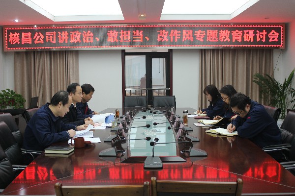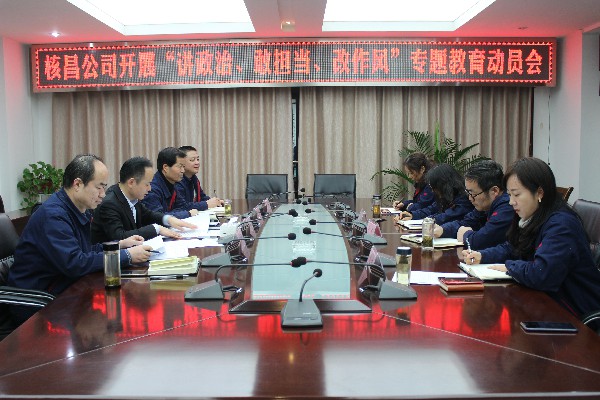 12月17日下午,核昌公司黨委根據(jù)集團公司黨委的安排部署,在公司小會議室召開了“講政治、敢擔當、改作風”專題教育動員會,核昌公司全體班子成員參加會議,會議由黨委書記王超宏主持...