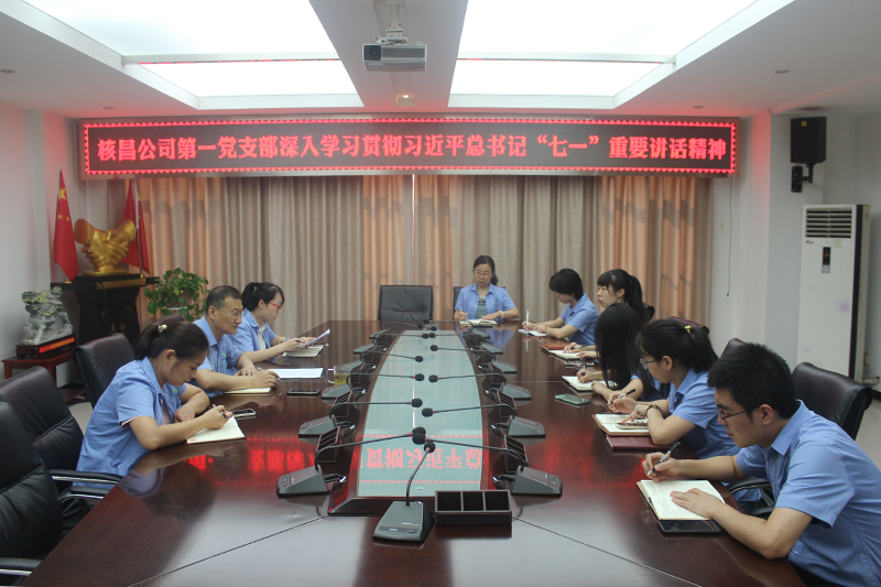深入學習貫徹“七一”重要講話精神,深刻領會精神實質,準確把握實踐要求,充分發揮思想引領作用,切實把思想和行動統一到講話精神上來。7月29日上午,核昌公司第一黨支部組織召開了支部會議,會議由支部書記王立君主持。