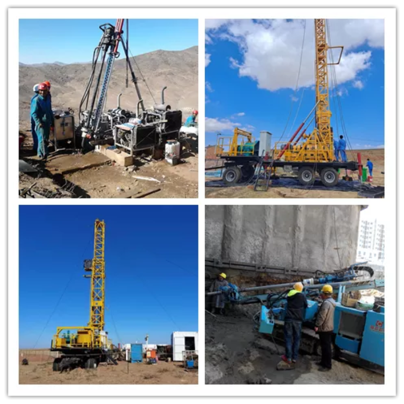 HXY-1600型(機(jī)械動力頭長行程給進(jìn))拖車鉆機(jī)和HXY-2000智能鉆探機(jī)組,是一款用于砂巖型鈾礦地質(zhì)勘探和開采、機(jī)動性好、卷揚(yáng)機(jī)提升力更強(qiáng)、鉆探深度更深的新產(chǎn)品。該設(shè)備與國內(nèi)外同類鉆機(jī)相比,在進(jìn)尺速度、上下鉆速度、孔底壓力控制、鉆進(jìn)參數(shù)顯示和控制方面具有顯著的特點(diǎn),杜絕了原鉆機(jī)鉆進(jìn)能力不足、鉆塔承載能力小、鉆塔高度低、輔助工作時(shí)間長、卷揚(yáng)機(jī)排繩困難、卷揚(yáng)機(jī)操縱費(fèi)力、鉆塔最大負(fù)荷無法限定等缺點(diǎn),得到了中核集團(tuán)208大隊(duì)、243大隊(duì)、216大隊(duì)、湖南中核勘探有限責(zé)任公司、內(nèi)蒙煤田地質(zhì)局等單位的一致認(rèn)可。