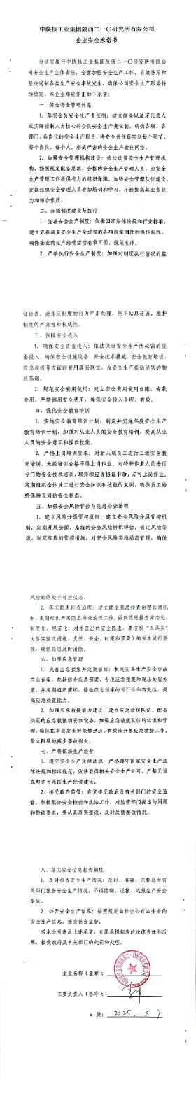 中陜核工業集團陜西二一〇研究所有限公司企業安全承諾書